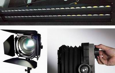 大家都知道,ETC的Source Four LED是硬光斑的聚光燈具,可通過更換不同角度的鏡頭,做到一燈多用。調(diào)研中,發(fā)現(xiàn)Source Four LED又有了新的成員——菲涅爾(螺紋)聚光燈和天幕燈,使用同一個光源部分(燈具基本部分),配以不同的頭部配件,產(chǎn)生了三種不同特性光斑的燈具?,F(xiàn)場操作體驗觀察都感覺良好。